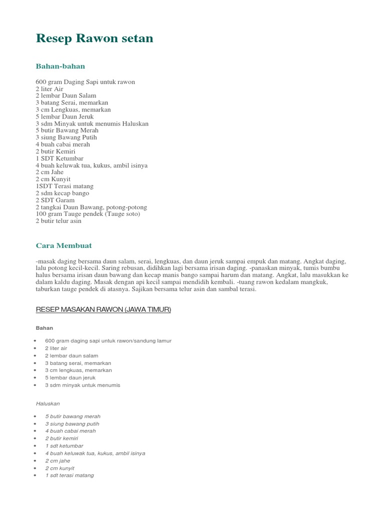 Resep Cara Membuat Rawon Setan Surabaya Docx