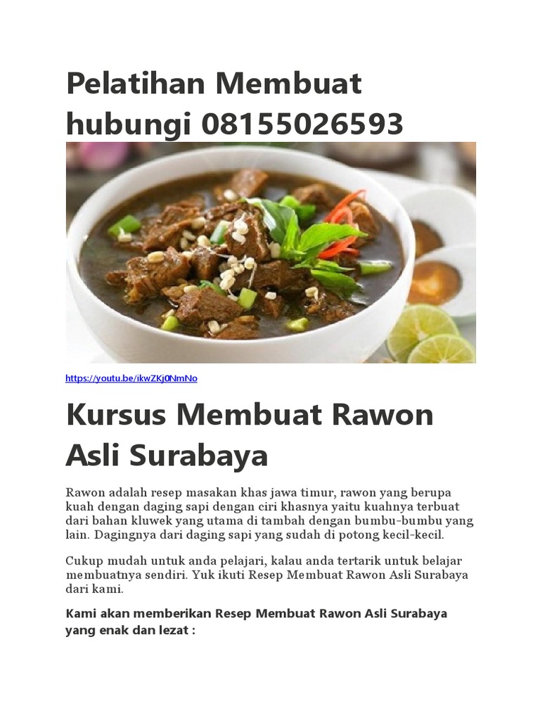 Pelatihan Membuat Rawon Asli Surabaya Hubungi 08155026593