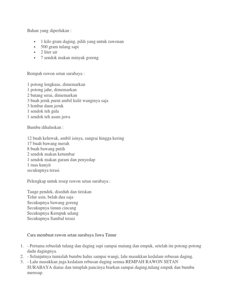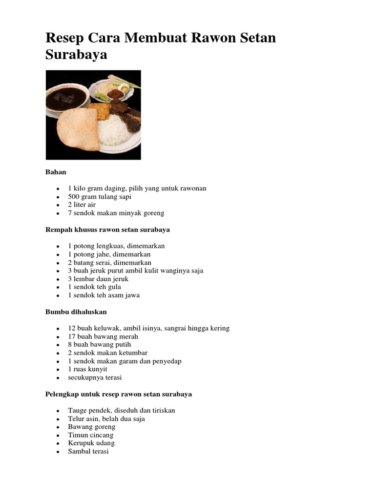 Resep Cara Membuat Rawon Setan Surabaya Docx