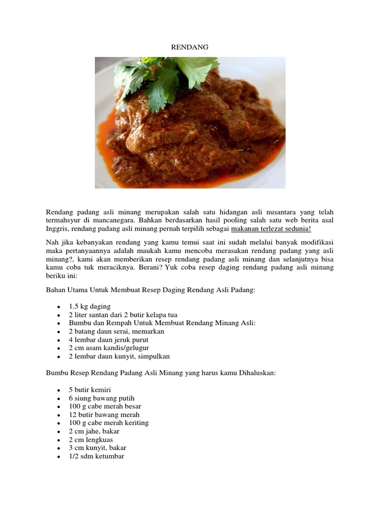 Resep Rendang Padang Asli Minang Aneka Kuliner Di 2019