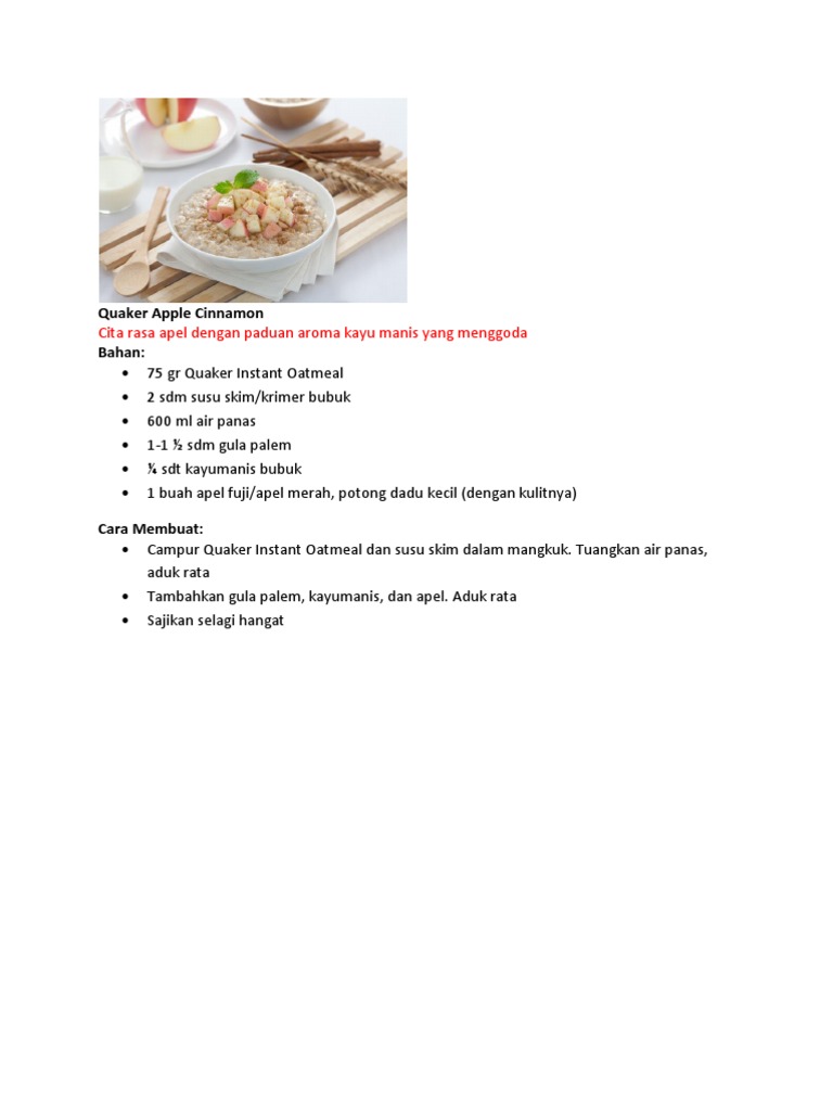 Resep quaker oatmeal merah. Quaker quick cooking oatmeal 12 kg. Bubur ayam biasanya terbuat dari beras yang kerap dijadikan menu sarapan. Sekarang bacaterus akan memberi tahu anda resep dan cara membuat oatmeal untuk sarapan.
