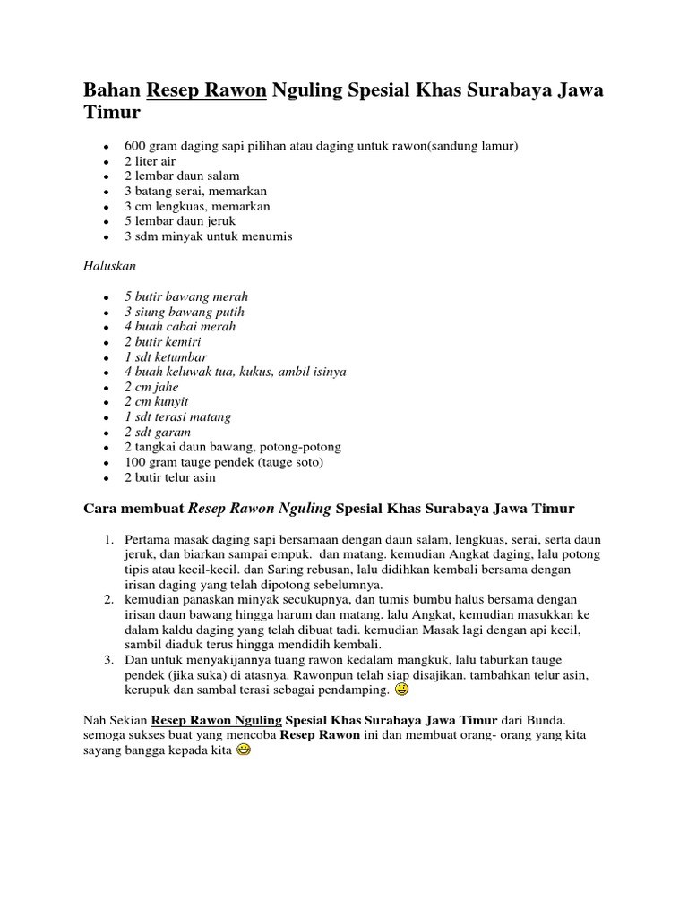 Bahan Resep Rawon Nguling Spesial Khas Surabaya Jawa Timur Docx